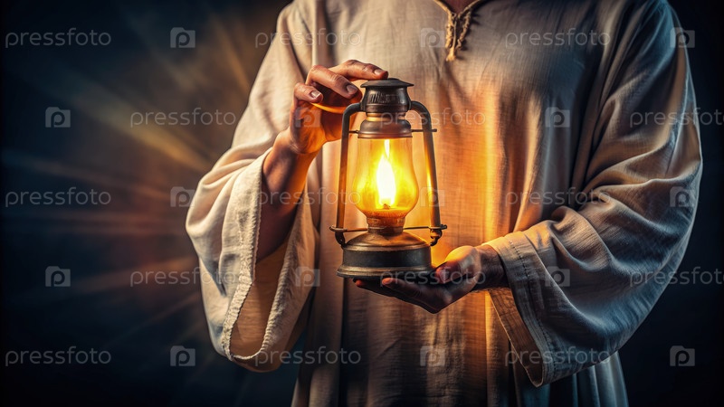 Человек, держащий мигающую масляную лампу в темной обстановке