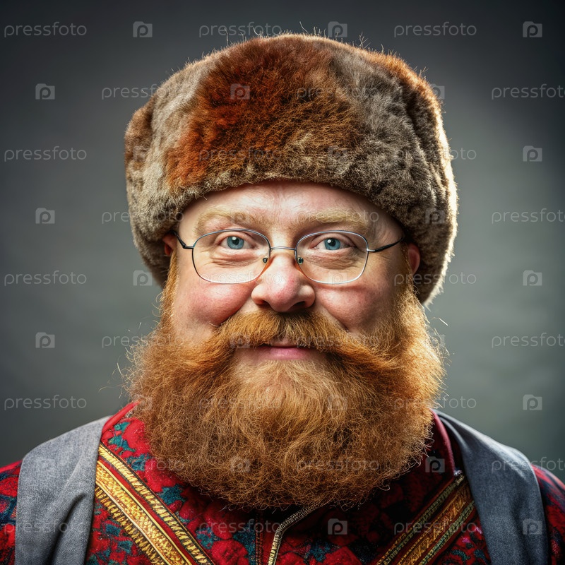 Улыбающийся мужчина с красной бородой, носящий меховую шляпу
