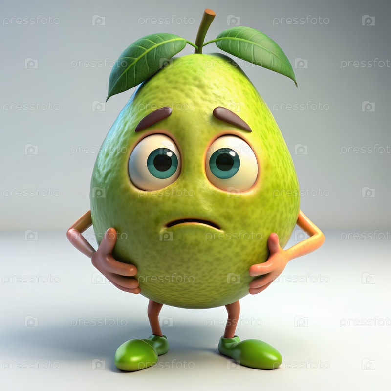 Беспокойная гуава мультфильмовый персонаж с маленькими ногами стоит на белом фоне