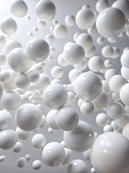 Белые сферы плавают на светло-сером абстрактном фоне