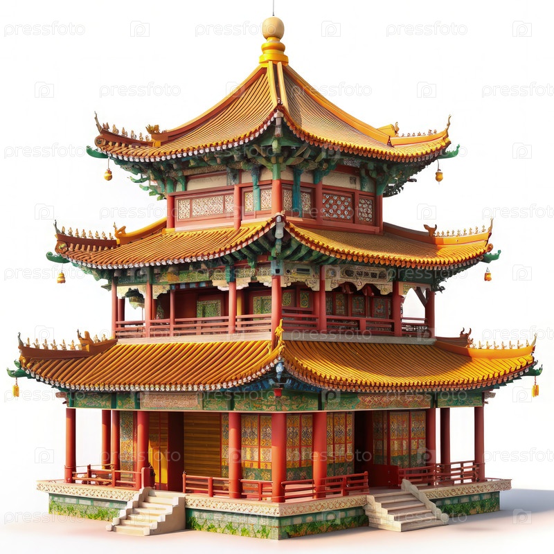 Традиционная китайская пагода изолирована на белом фоне