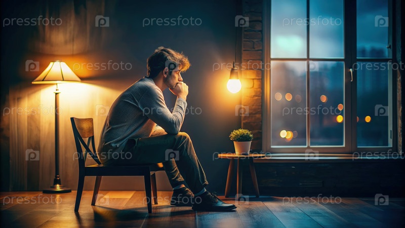 Человек созерцает жизнь в тихой вечерней комнате