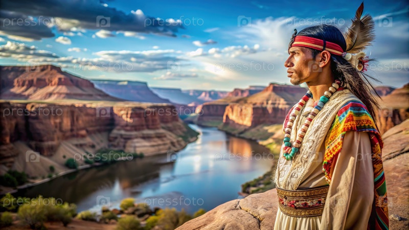 Молодой индейский американец смотрит на ландшафт каньона
