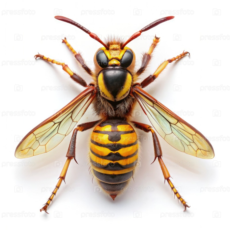 Ближайшее изображение европейского шершня на белом фоне