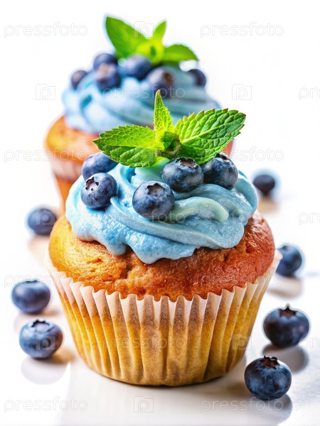 Голубоцветные кексы с синим кремом и свежей мятой. генеративный ИИ