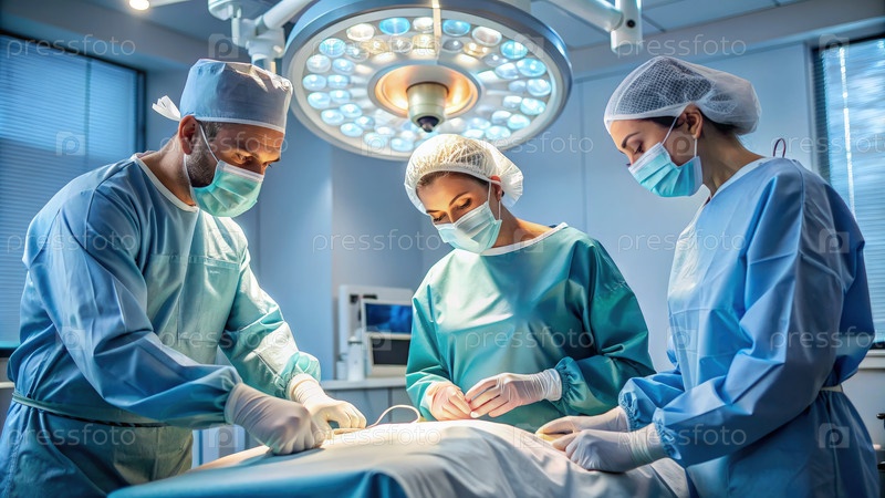 Хирургическая группа, выполняющая операцию в больничной операционной