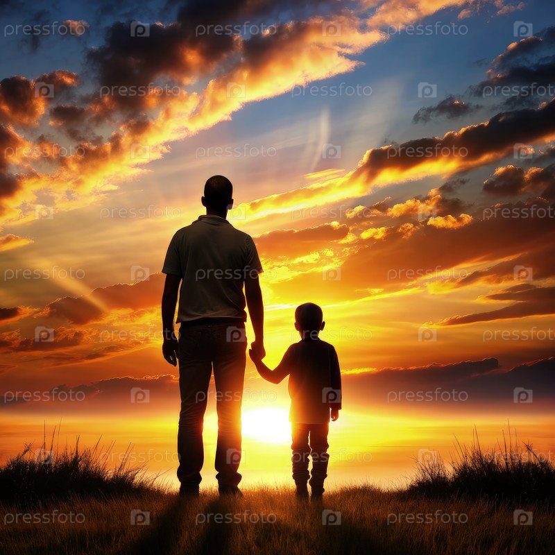 Силуэт отца и сына при закате солнца