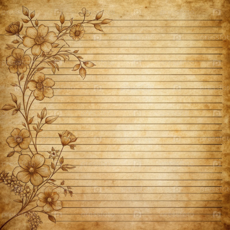 Винтажная обшитая бумага с иллюстрацией цветочной границы