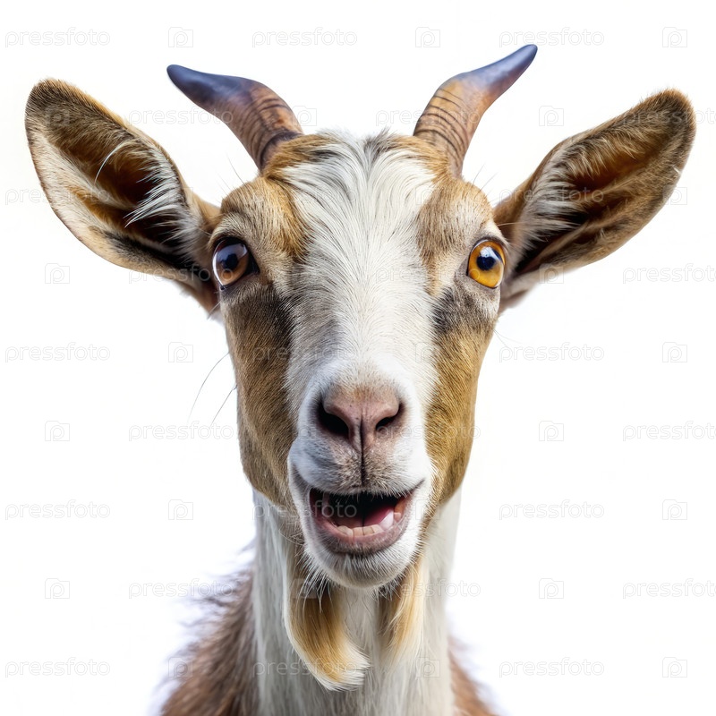 Коза с широкими глазами и открытым ртом