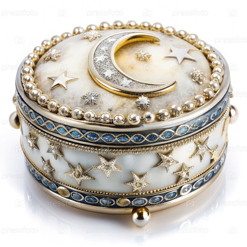 Изысканная ювелирная коробка "Луна и звезды" на белом фоне