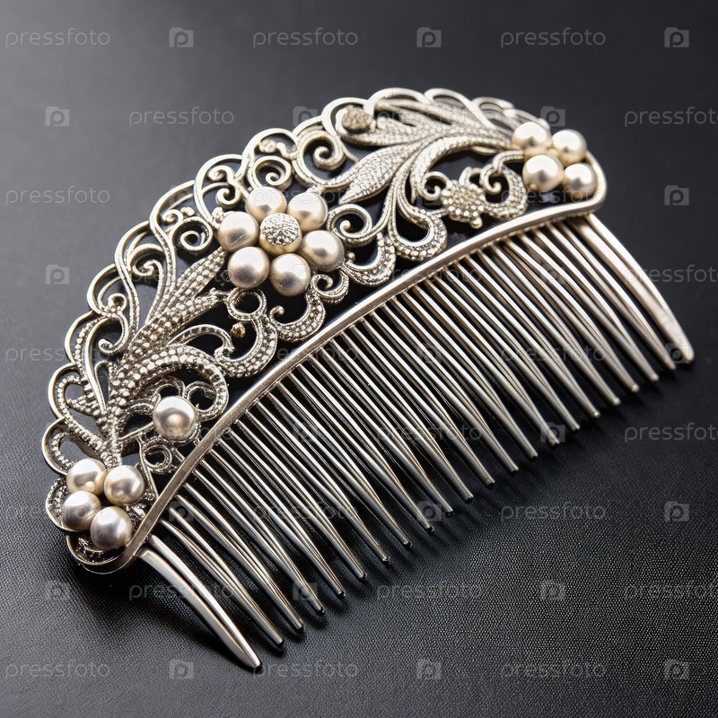Деликатный серебряный гребень с жемчужинными акцентами и сложным цветочным дизайном. генеративная ИИ