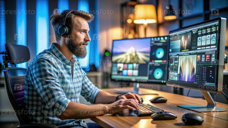 Фокусированный видеоредактор, работающий над программным обеспечением для редактирования в домашней студии