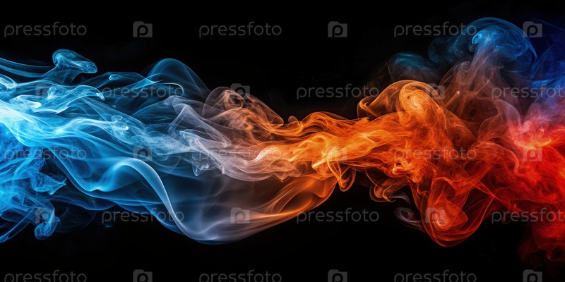Abstract Синие, красные и оранжевые волны дыма на черном фоне