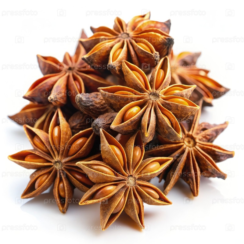 Ближайшее изображение звездного аниса на белом фоне. генеративный ИИ