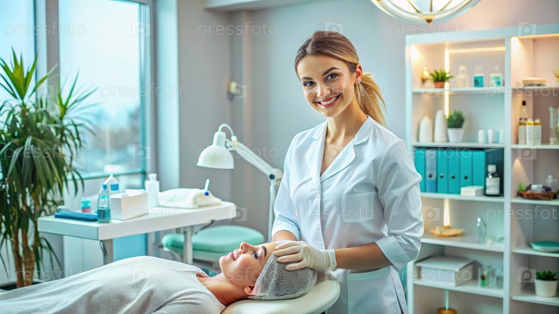 Эстетик, выполняющий лечение лица в современной клинике.Генеративный ИИ