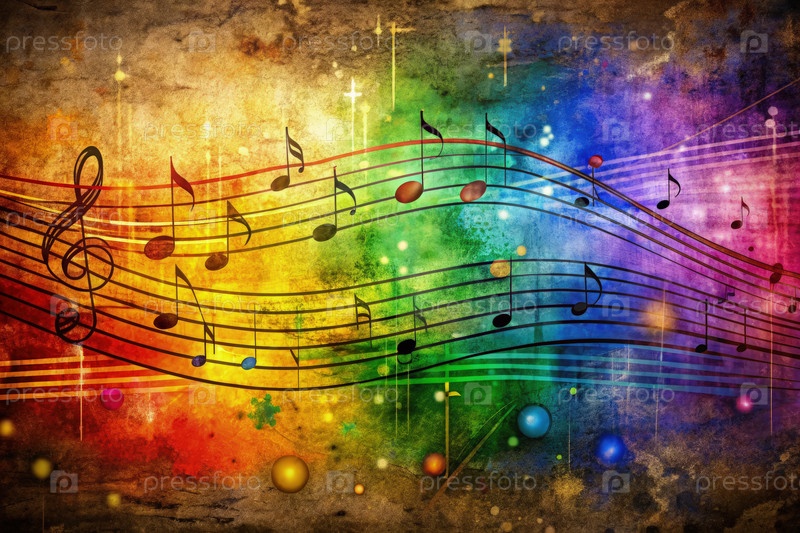 Цветные музыкальные ноты на художественном акварельном фоне