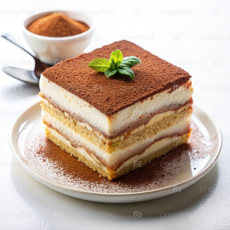 Вкусный кусок тирамису со слоями губчатого торта и сливочного