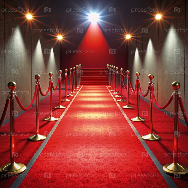 Пустой красный ковер со стенами, ведущими к лестнице под яркими огнями