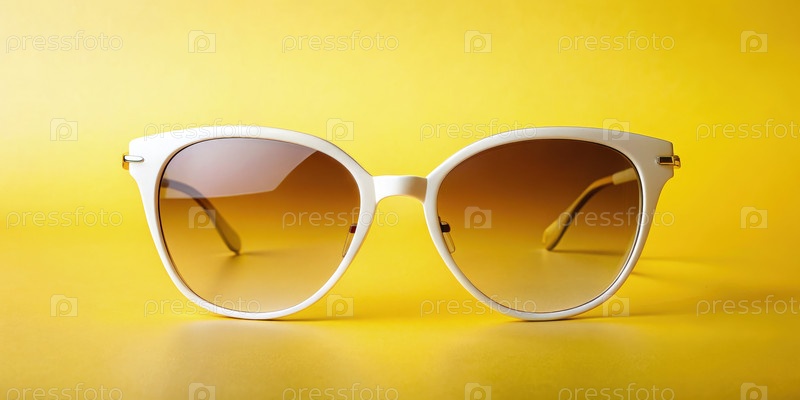 Белые солнцезащитные очки с коричневыми линзами на желтом фоне