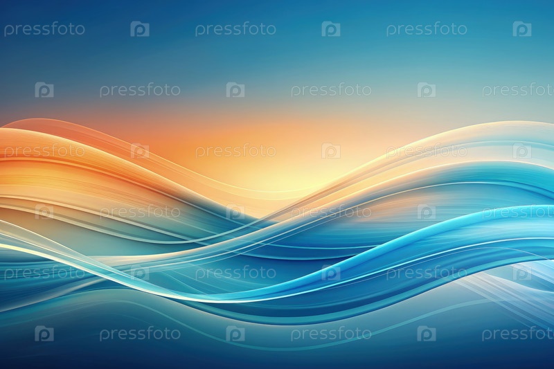 Спокойный абстрактный дизайн с нежными изогнутыми линиями в синих и оранжевых оттенках. генеративная ИИ