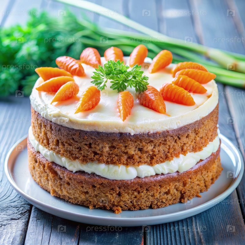 Двухслойный морковный торт со сливочным сыром и украшениями из моркови