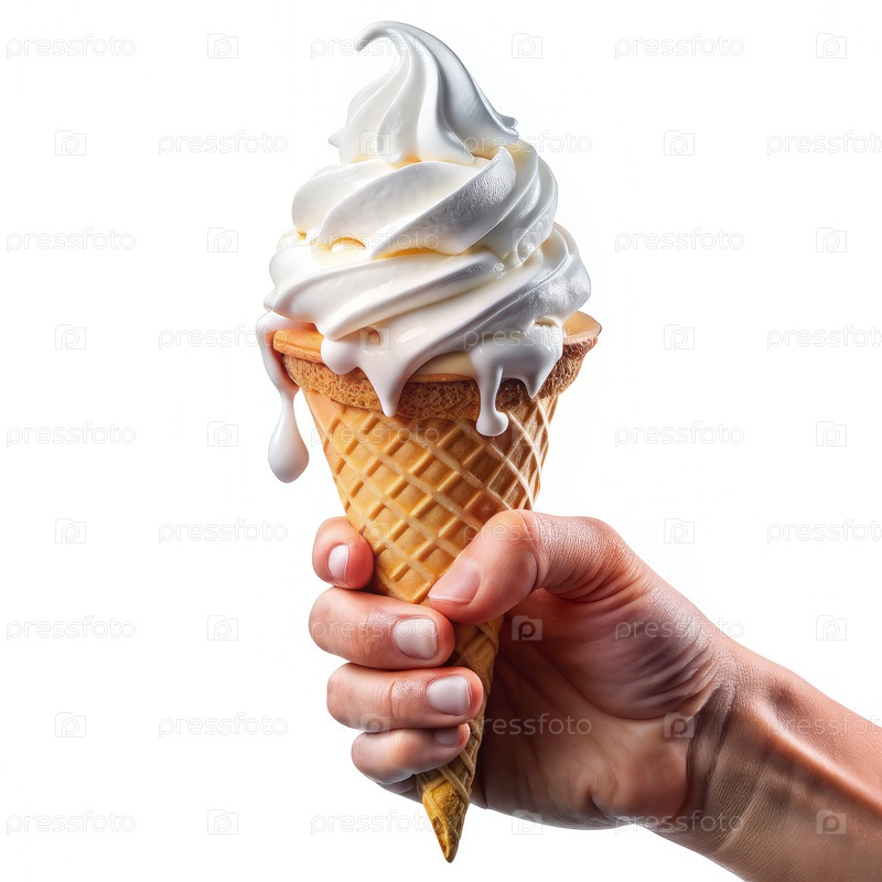 Рука, держащая тающий мягкий конь мороженого. генератив AI