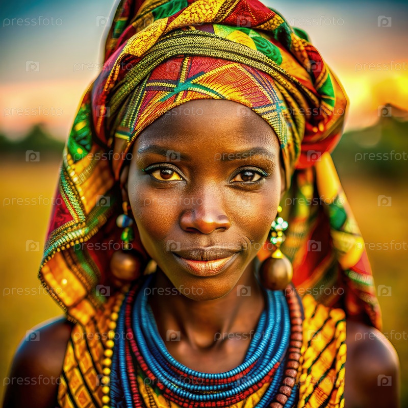 Африканская женщина в традиционных головных уборах и ювелирных изделиях