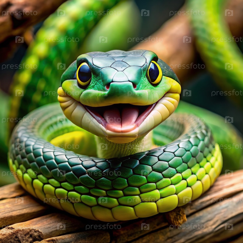 Улыбающийся бумсланг Змея, свернутая на ветви