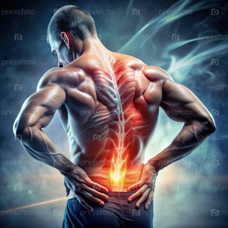 Близкое изображение мускулистого мужчины, испытывающего боль в спине