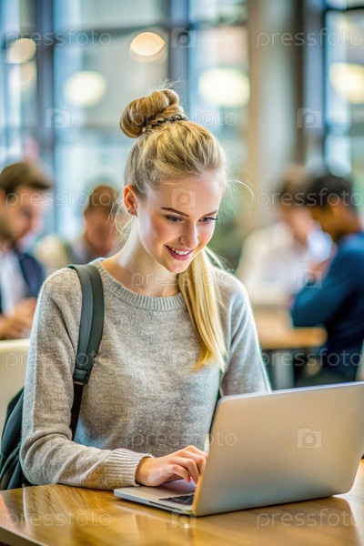 Молодой международный студент использует ноутбук в современном учебном пространстве