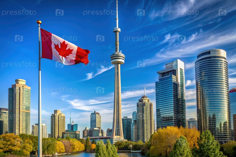 Солнечный день в Торонто с высоким канадским флагом