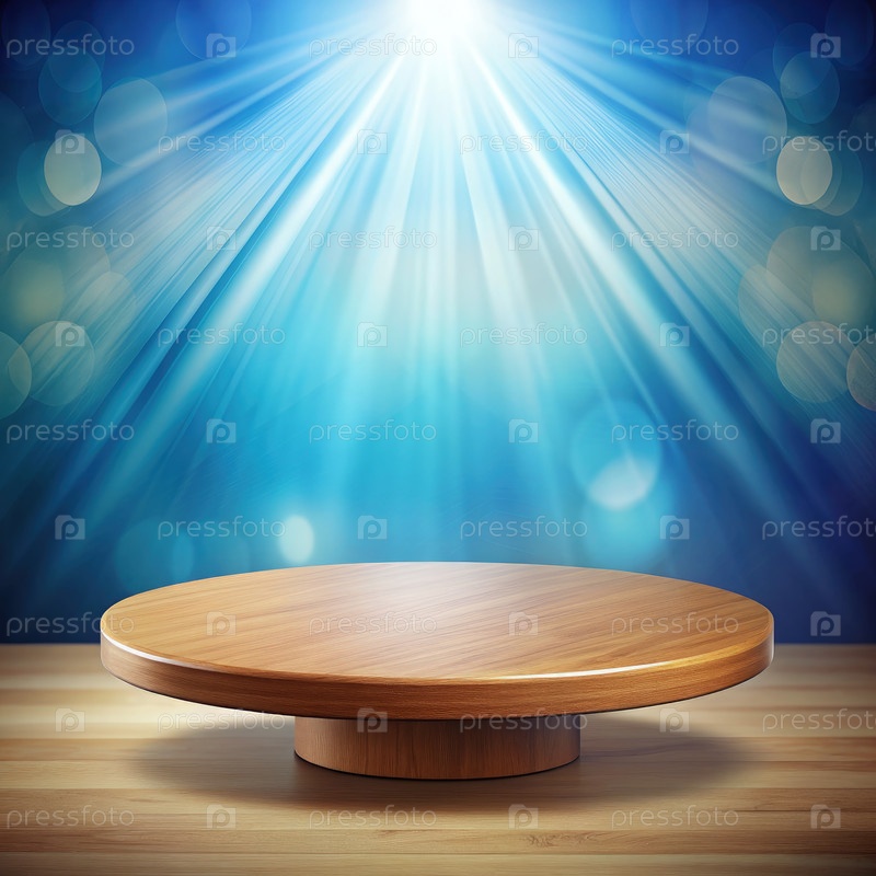 Деревянная платформа для подиума со световыми лучами и фоном боке