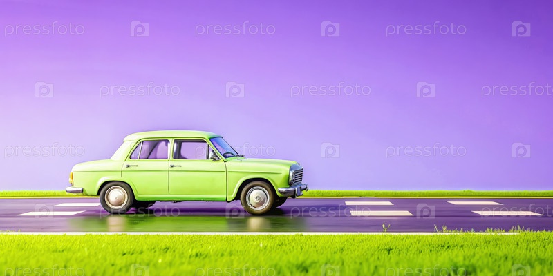 Автомобиль, едущий по дороге с фиолетовым небом. генеративный зеленый ИИ