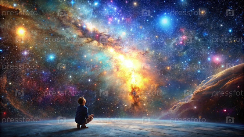 Одинокая фигура смотрит вверх на необъятность космоса