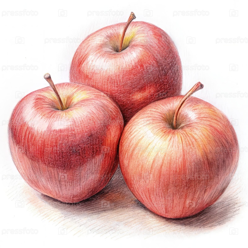 Три красных яблока иллюстрация чертежа карандашом. генеративный ИИ