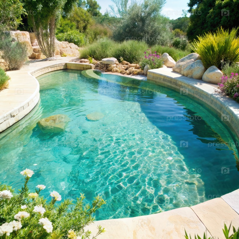 Спокойный природный бассейн в роскошном оазисе садов