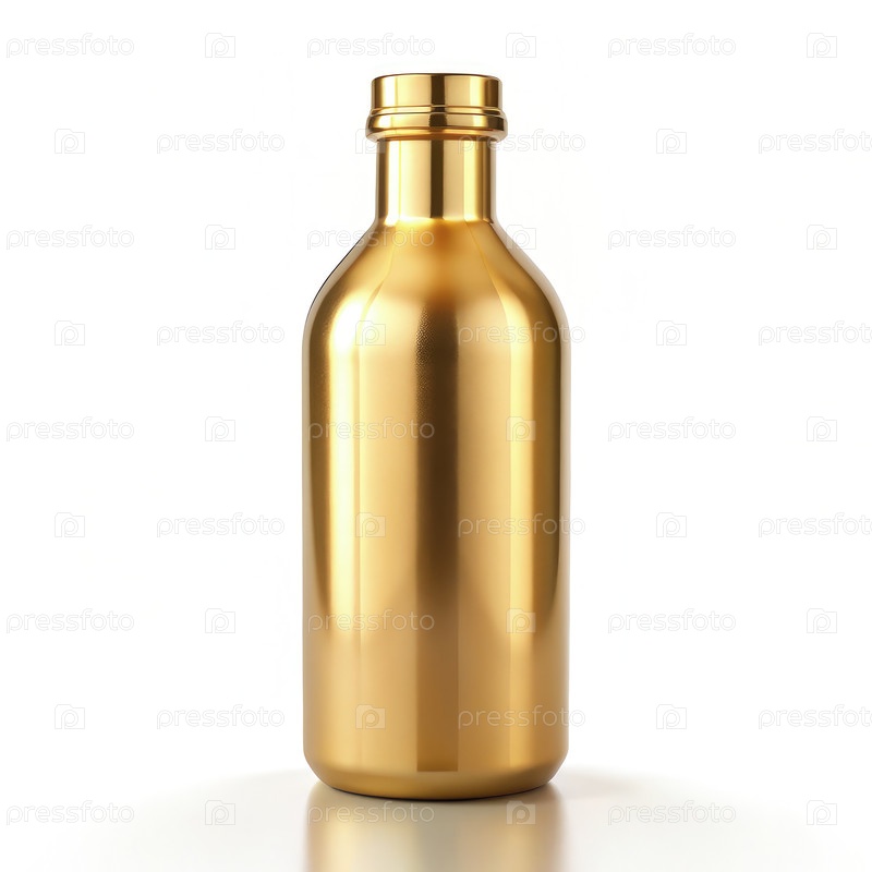 Золото-цветная бутылка изолирована на белом фоне