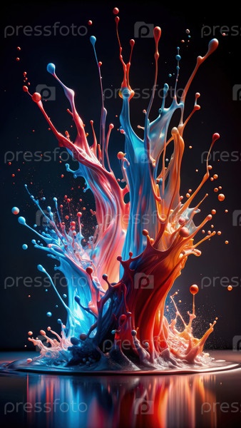 Живая красочная краска брызгает на черный фон. генеративная ИИ