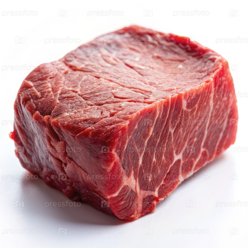 Свежий стейк из сырой говядины, выделенный на белом фоне