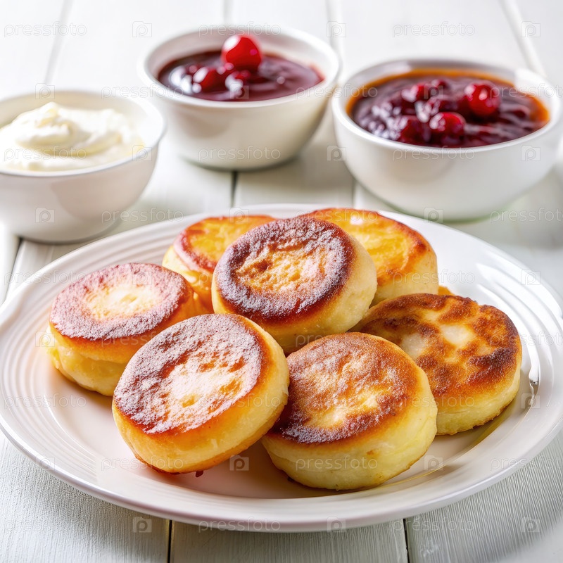 Тарелка золотой коричневой сиренки с соусом сладкой клюквы