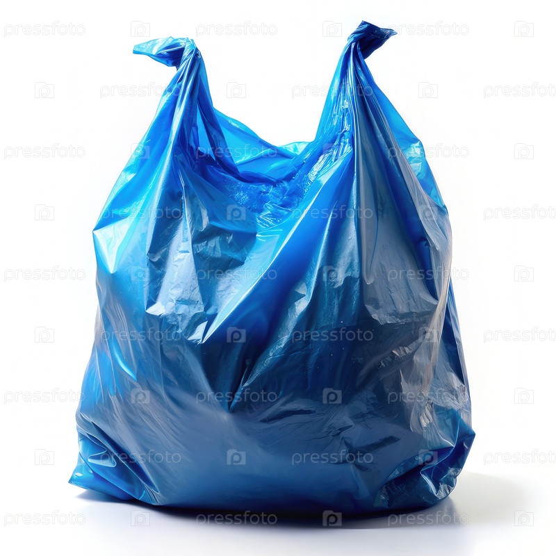 Один большой синий пластиковый пакет, изолированный на белом фоне