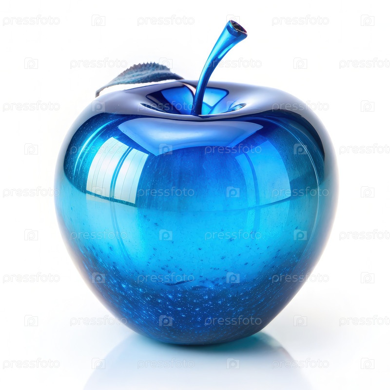Блестящее голубое стекло яблоко на белом фоне
