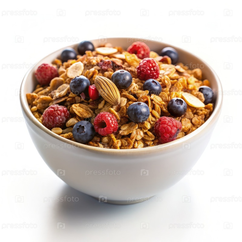 Хрустящая миска из гранолы со свежими ягодами и миндалями