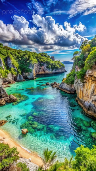 Спокойная скрытая бухта с кристально чистой водой в солнечный день