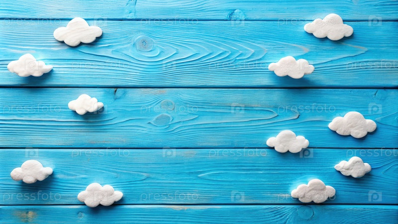 Белые облака на голубом деревянном фоне