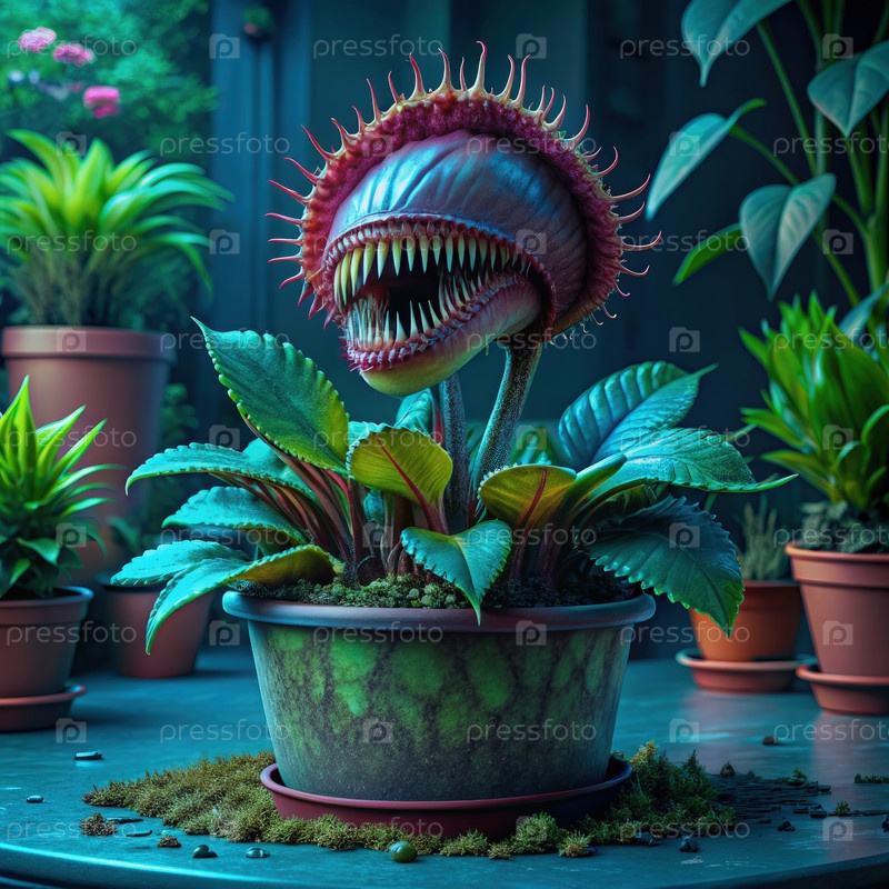 Млекоядный цветок в горшке, ночью, внутри помещений