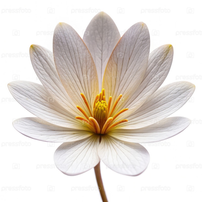 Одиночный лепесток белого кровеносного корня, изолированный на белом фоне