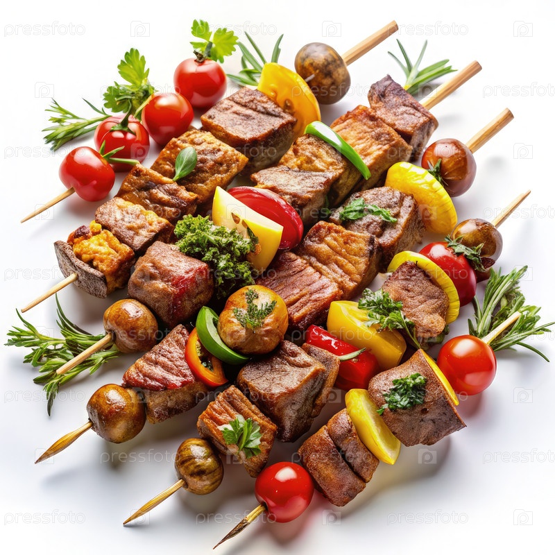 Стеклянные стейки на гриле с овощами и грибами. генеративная ИИ
