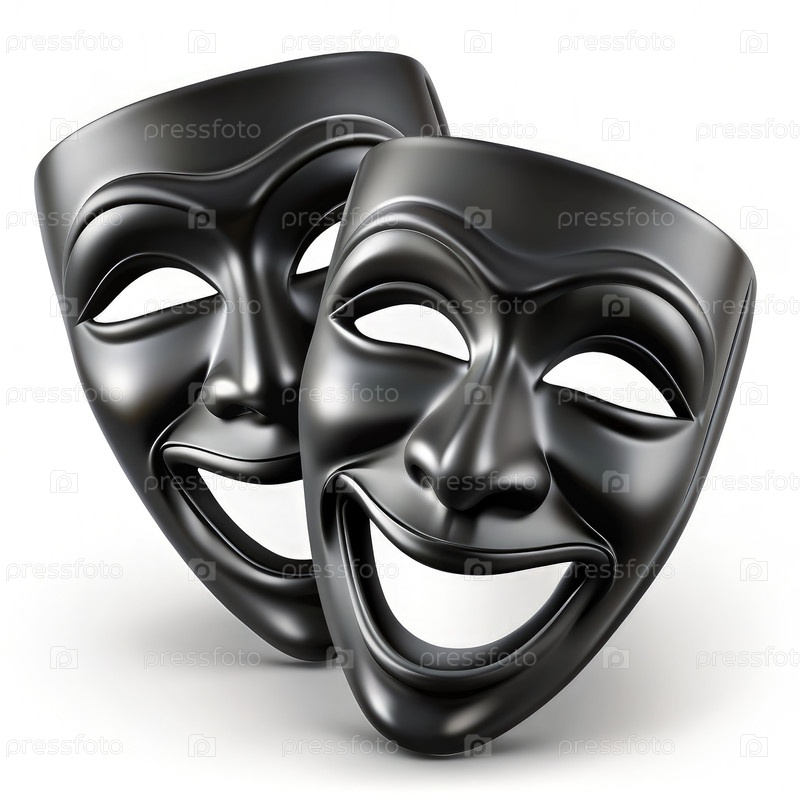 Черные театральные маски на белом фоне
