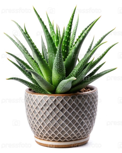 Роскошный зеленый Алоэ Вера растение в сером геометрическом горшке. генеративная ИИ